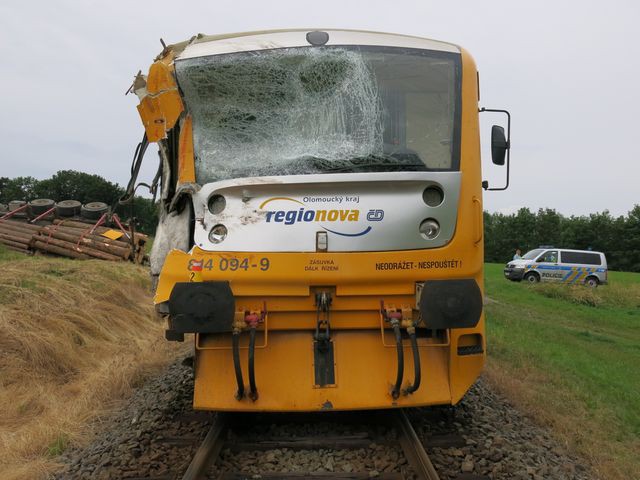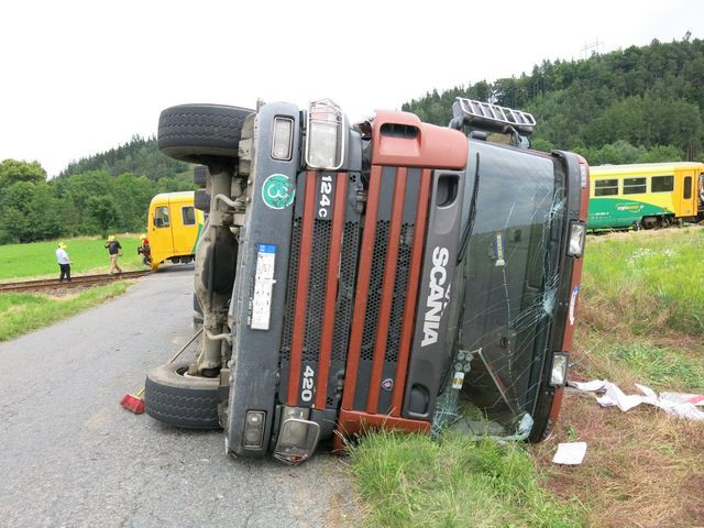 Na železničním přejezdu se střetl osobní vlak s náklaďákem