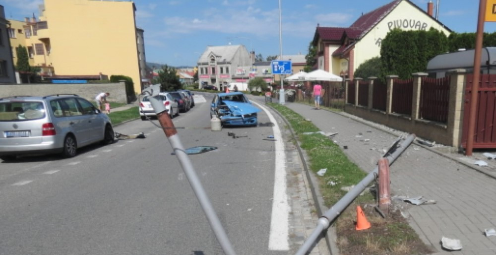 Opilý senior narazil do sloupu veřejného osvětlení. Zranil se a přišel o řidičský průkaz