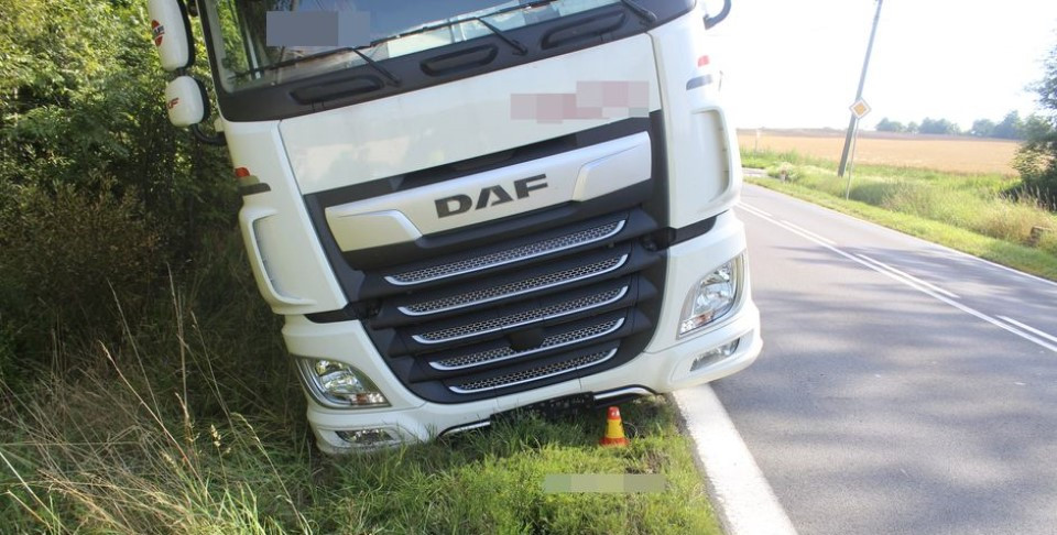 Řidič kamionu havaroval do příkopu. Policie zjistila, že má zákaz řízení