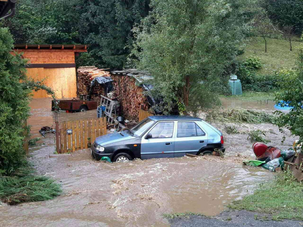 FOTO/VIDEO: Silná bouřka způsobila lokální záplavy, voda odplavovala zaparkovaná auta