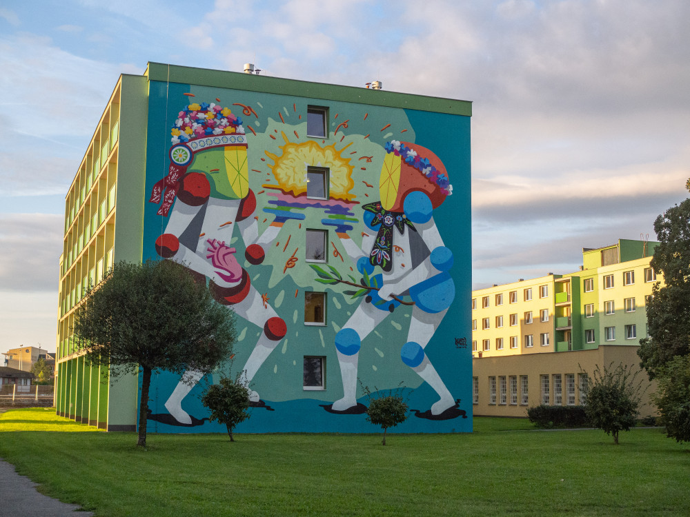 FOTO: V areálu vysokoškolských kolejí vznikly v rámci Street Art Festivalu dva sedmnáctimetrové muraly