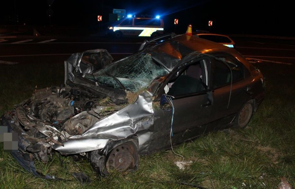 Muž na pervitinu havaroval na kruhovém objezdu u Globusu. Policie ho našla o tři hodiny později na dálnici