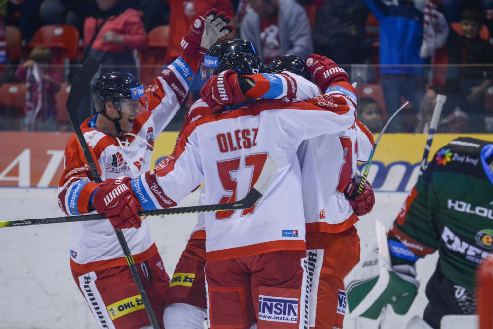 Olomoučtí hokejisté porazili Karlovy Vary 3:2 a v tabulce extraligy jsou čtvrtí