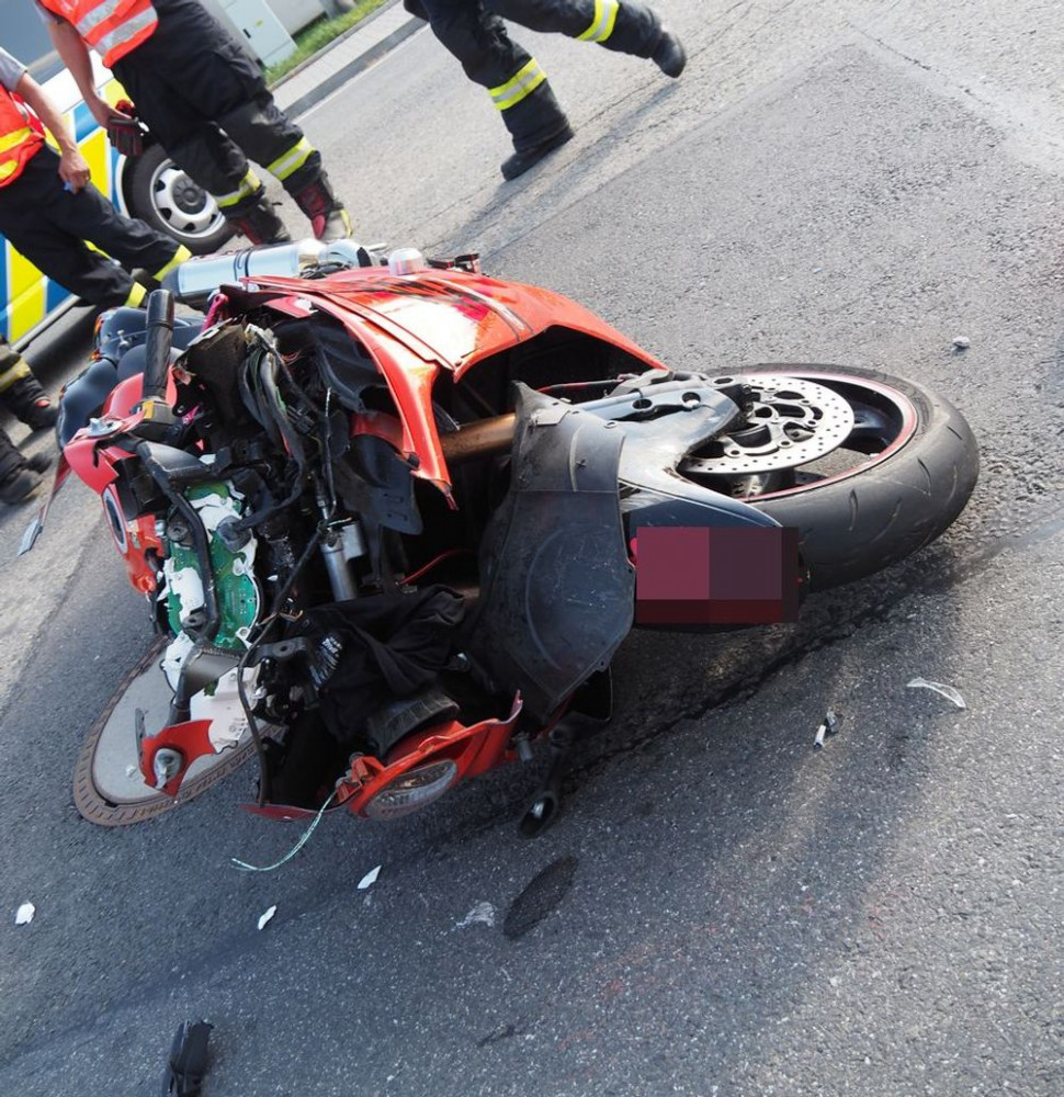 V křižovatce se srazilo osobní auto s motorkářem. Oba řidiči skončili v péči zdravotníků