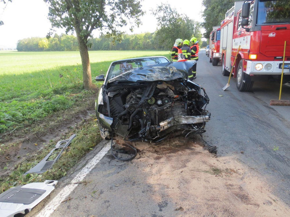 Řidič Audi nezvládl zatáčku a narazil do stromu