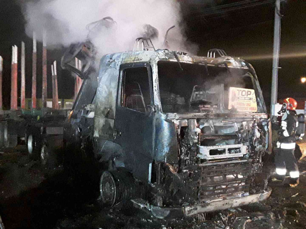 Dnes ráno shořel tahač se dřevem. Škoda jde do statisíců