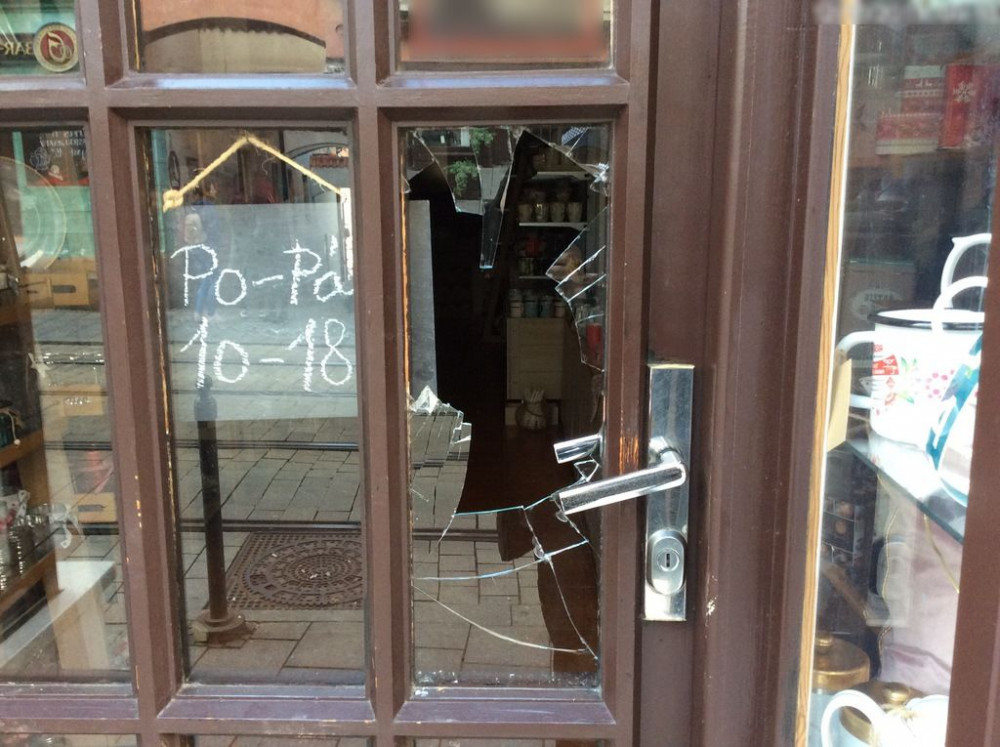 Vandal rozbil dveře prodejny v Denisově ulici. Nic si z ní ale neodnesl