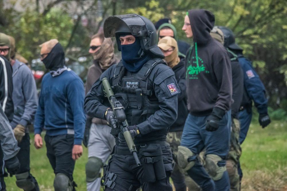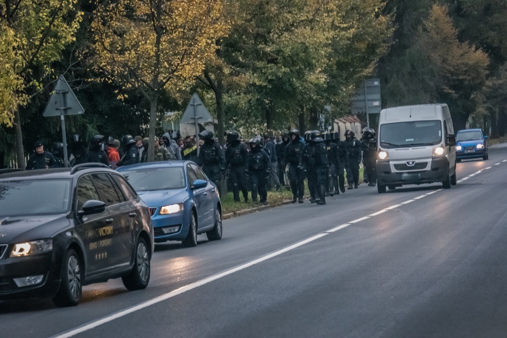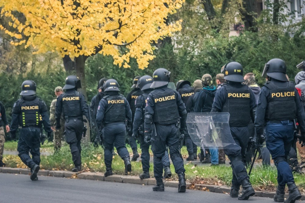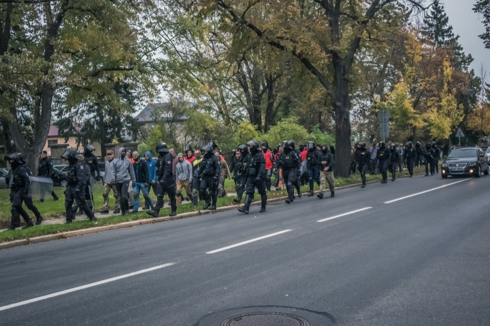 FOTO: Olomoucí dnes dopoledne prošel dav hlídaný policisty. Komplikoval dopravu na Masarykově třídě