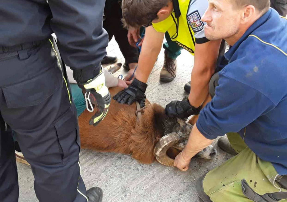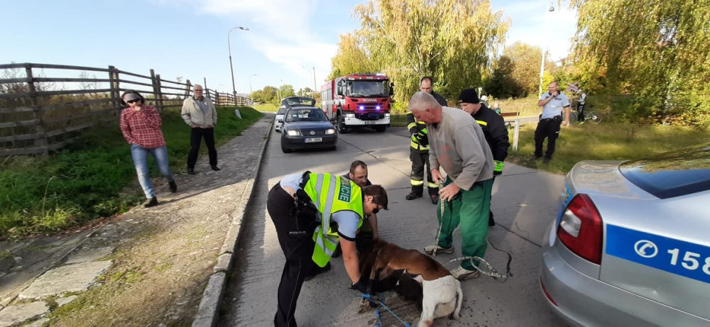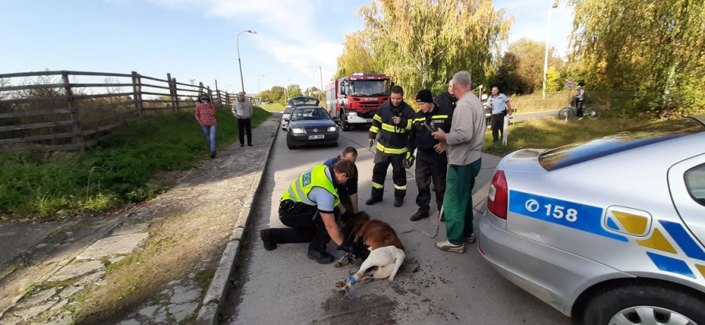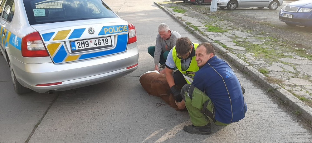 FOTO: Policisté i hasiči honili berana, který na Olomoucku zastavil vlakovou dopravu a zranil svého majitele