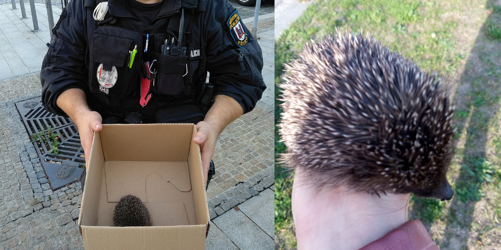 Učitelka zastavila dopravu, aby odchytila zmateného ježka. Strážníkům ho přivezla na kole v dlani