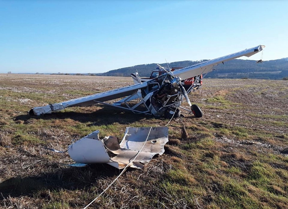 Hasiči vyjížděli k pádu letadla, kvůli větru se zřítilo z patnácti metrů