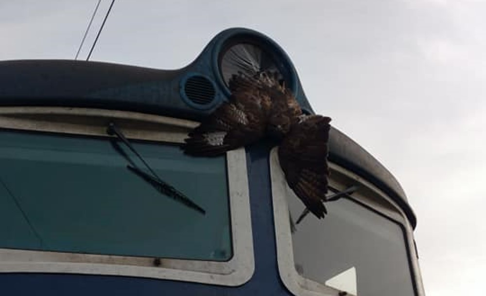 Káně narazilo do vlaku a uvízlo v horním světlometu, střet naštěstí přežilo