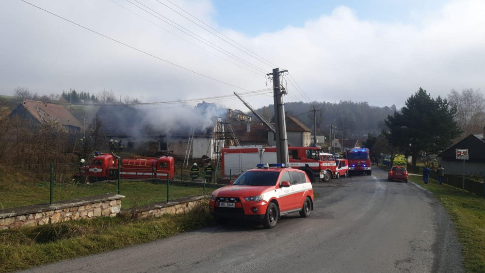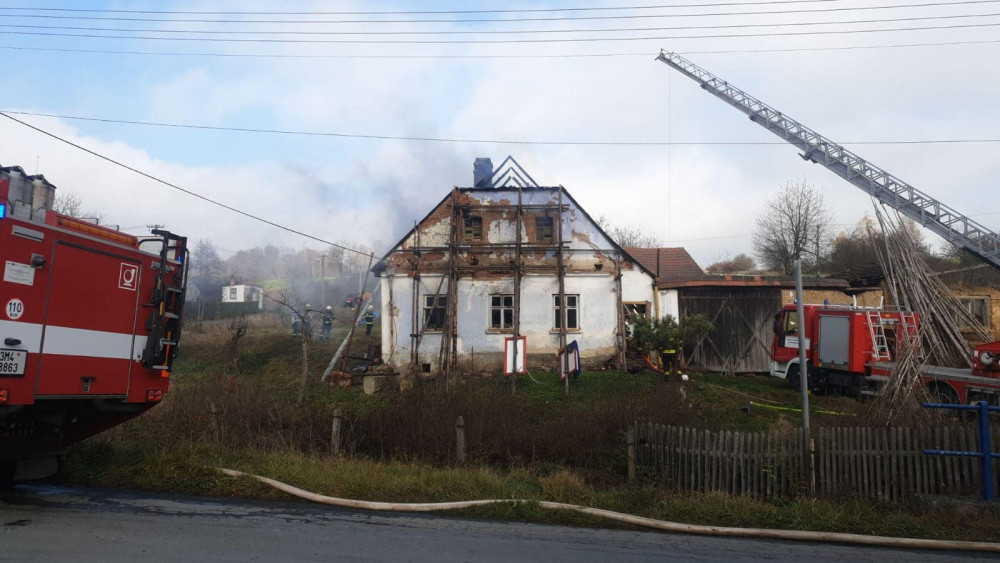AKTUÁLNĚ: Hasiči zasahují u požáru rodinného domu. Majitel se nadýchal nebezpečných zplodin