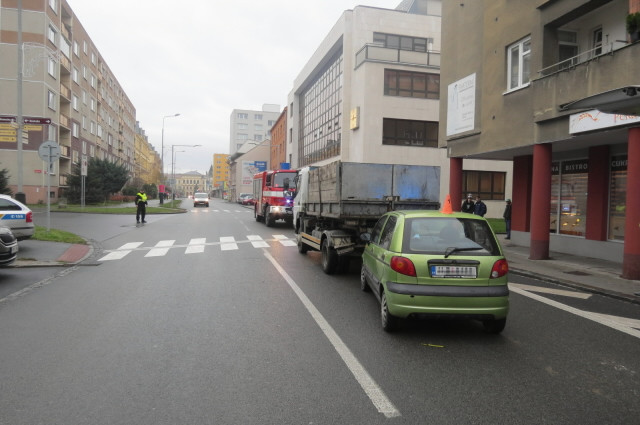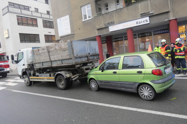 Seniorka nedodržela bezpečnou vzdálenost. Narazila do nákladního auta a zranila se