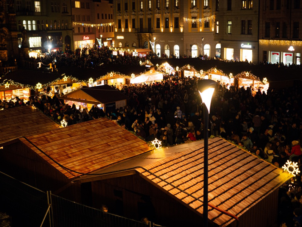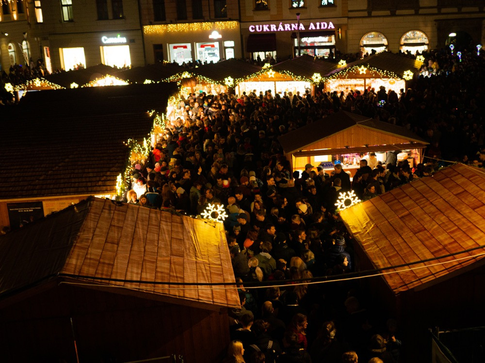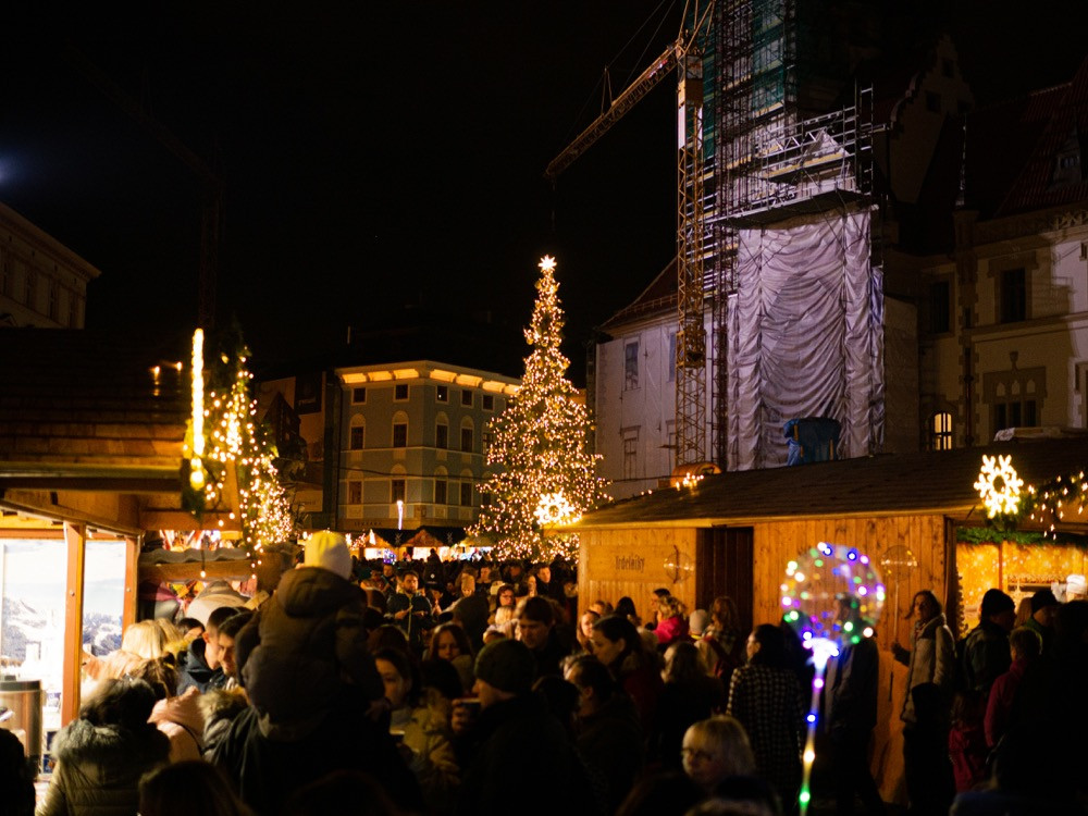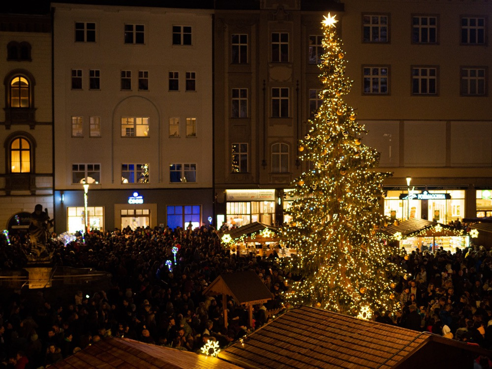 FOTO/VIDEO: Vánoční strom na Horním náměstí se letos podařilo rozsvítit až napotřetí. Někdo ho vytáhl ze zásuvky