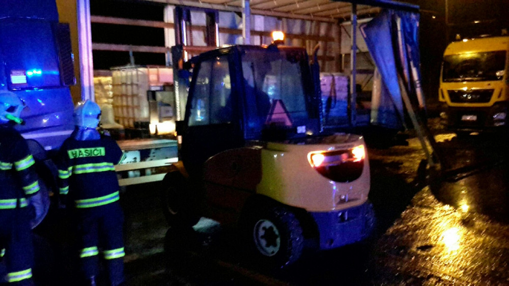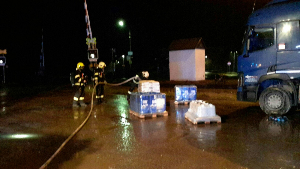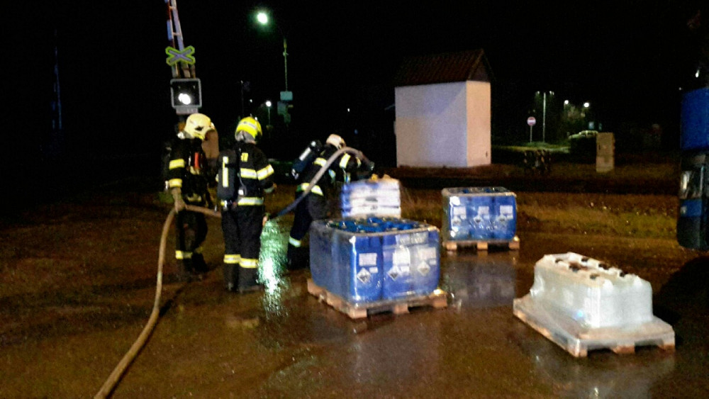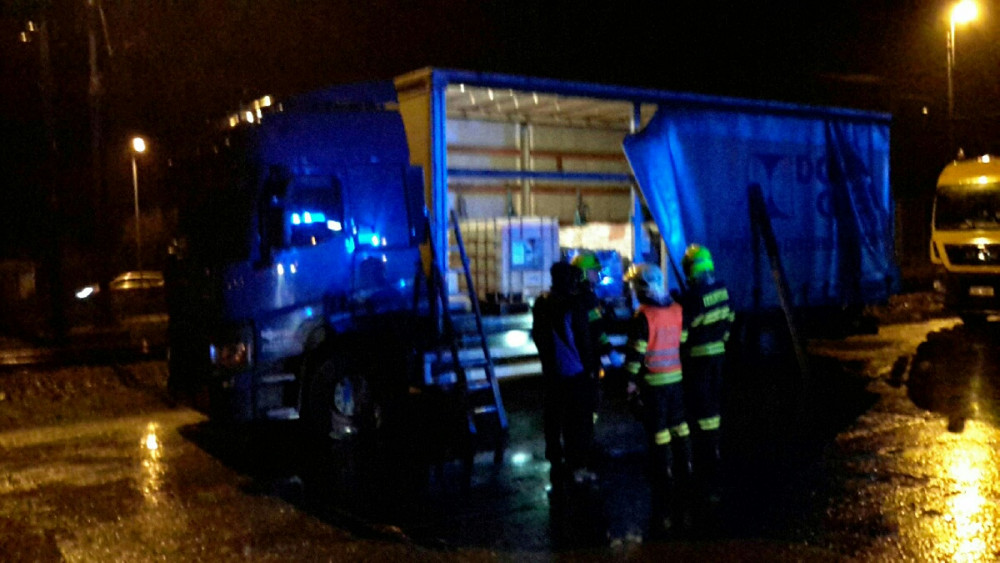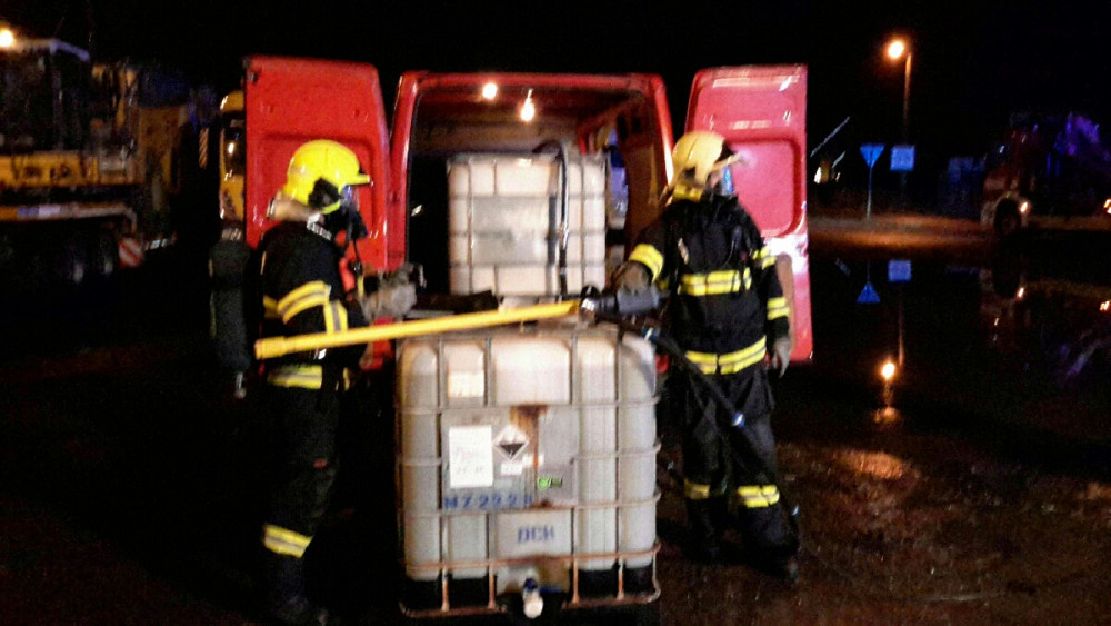 FOTO: Na silnici vytekla kyselina dusičná. Hasiči ji museli přečerpat