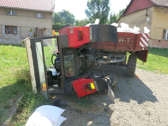 Traktorista to rozpálil z kopce, skončil převrácený na boku