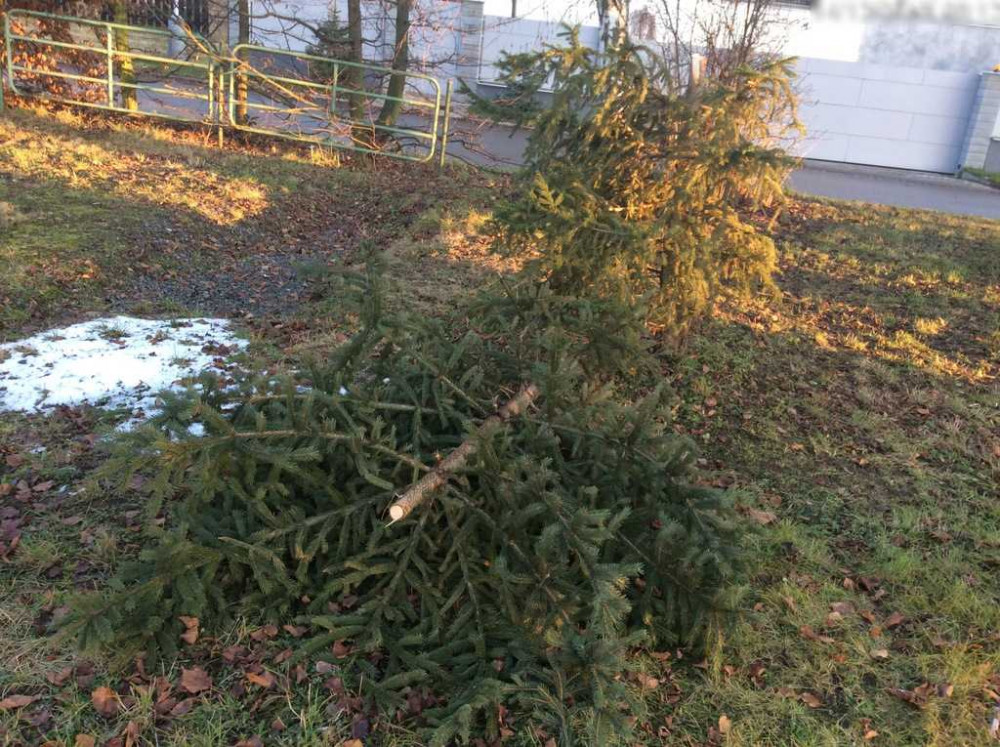 Neznámý vandal v Olomouci uřízl pětimetrový smrk. Jeho špičku si odnesl domů