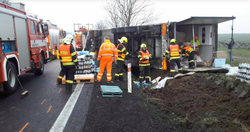 FOTO: Dopravu na Mohelničáku zkomplikovala nehoda kamionu