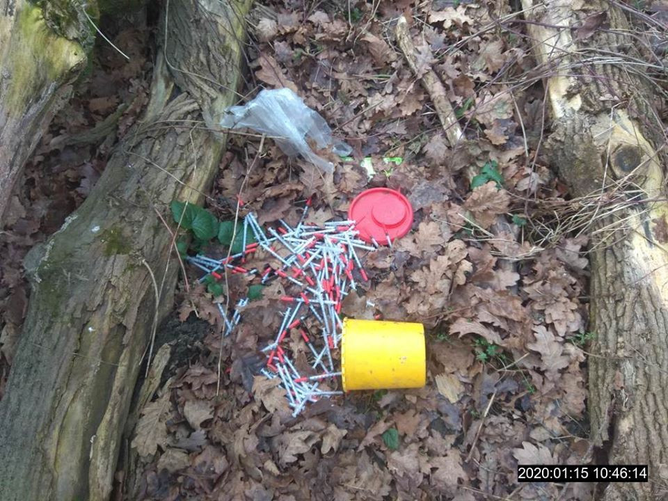 FOTO: Strážníci nalezli několik desítek použitých stříkaček pohozených na jednom místě