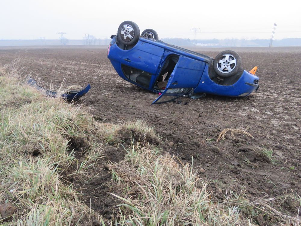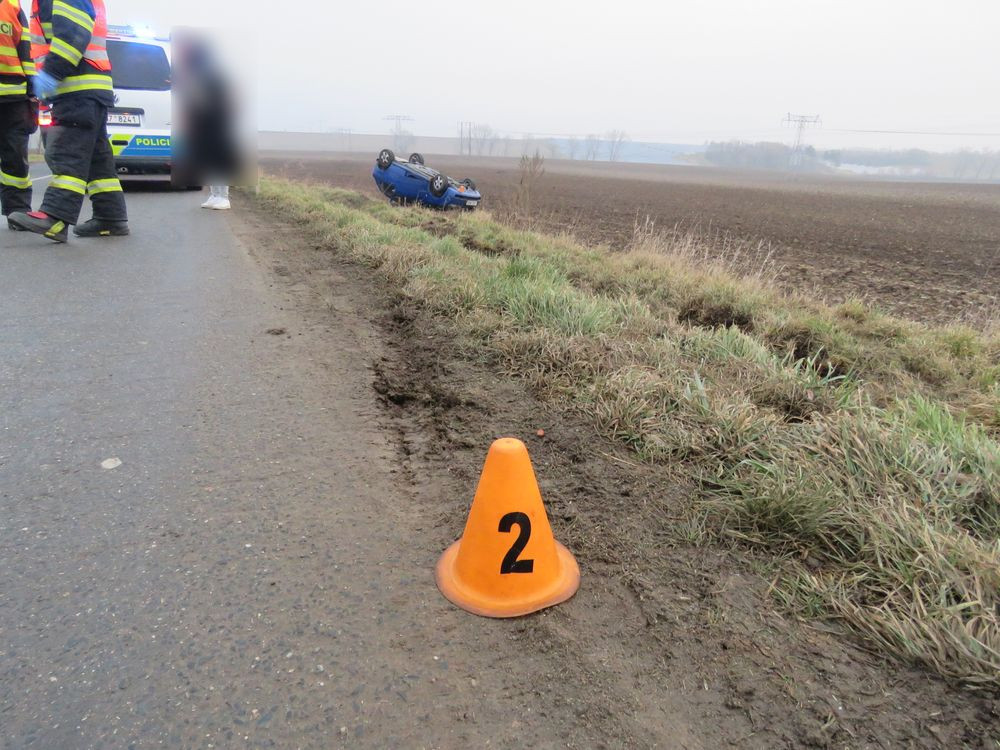 FOTO: Dvacetiletá řidička nezvádla ve velké rychlosti zatáčku a skončila s autem v poli