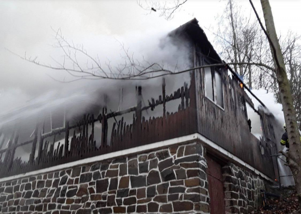Požár chaty na Přerovsku