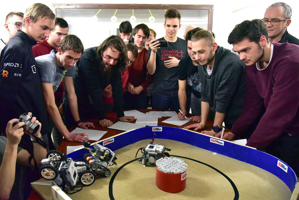 FOTO: Studenti ze Slovanského gymnázia zvítězili v soutěži Roboti@FSI na VUT v Brně