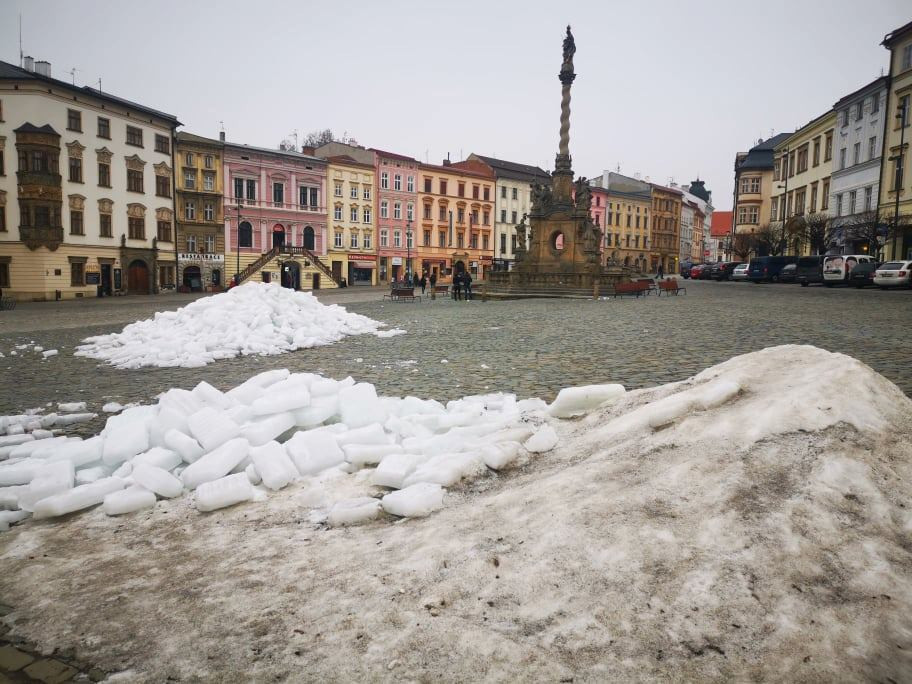 Z Dolního náměstí po měsíci konečně mizí hromada ledu