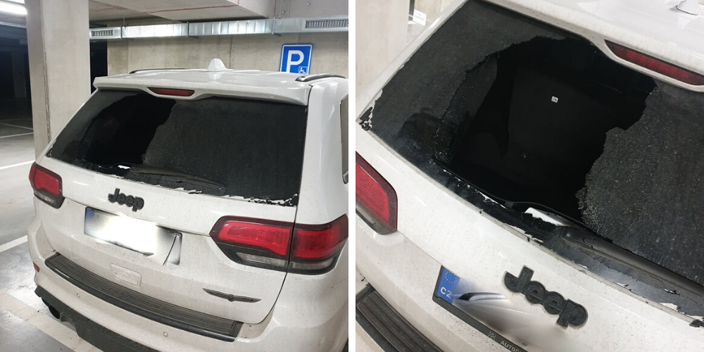 FOTO: V podzemních garážích u novostaveb nedaleko heliportu chtěl někdo vykrást luxusní auta