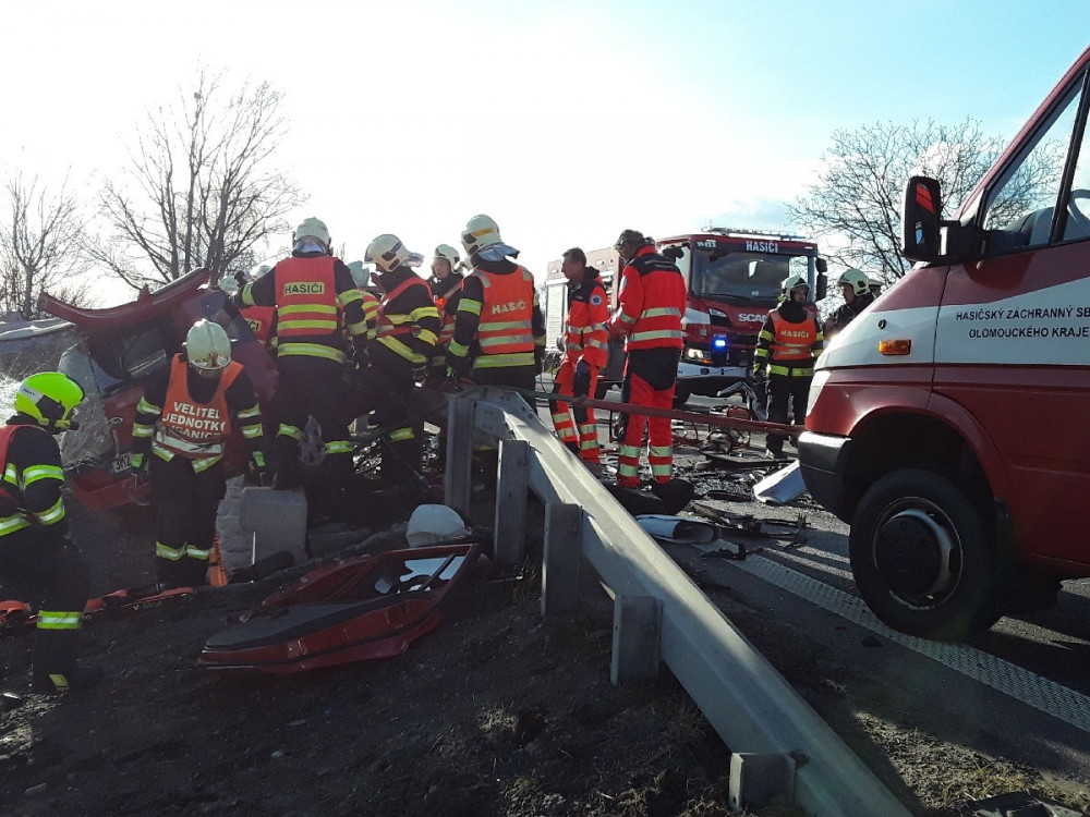 FOTO: Na Hranicku se srazila dvě auta, jeden mrtvý