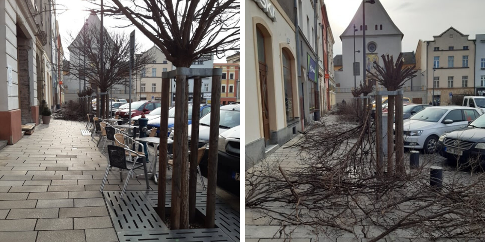 Stromy na Dolním náměstí razantně změnily svou podobu