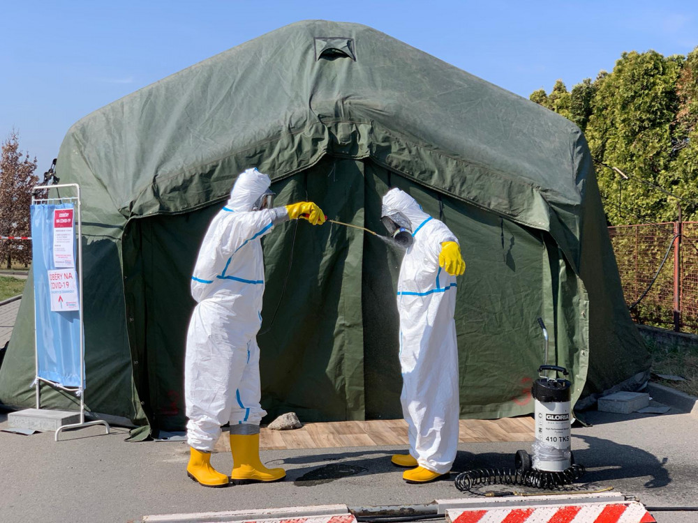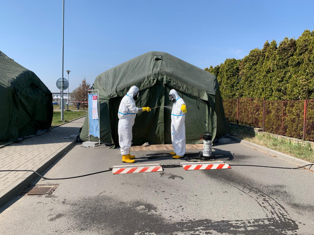 FOTO: Prostějovští hasiči dekontaminovali odběrové stany