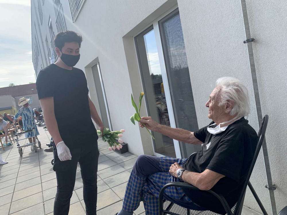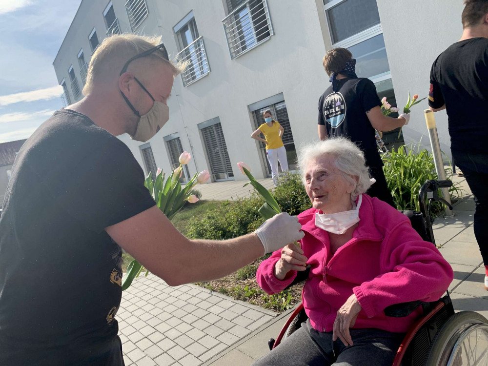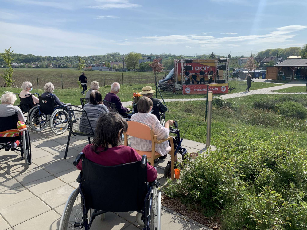 FOTO/VIDEO: Kapela Mirai zazpívala v rámci projektu Pod okny seniorům z domova ve Slavoníně