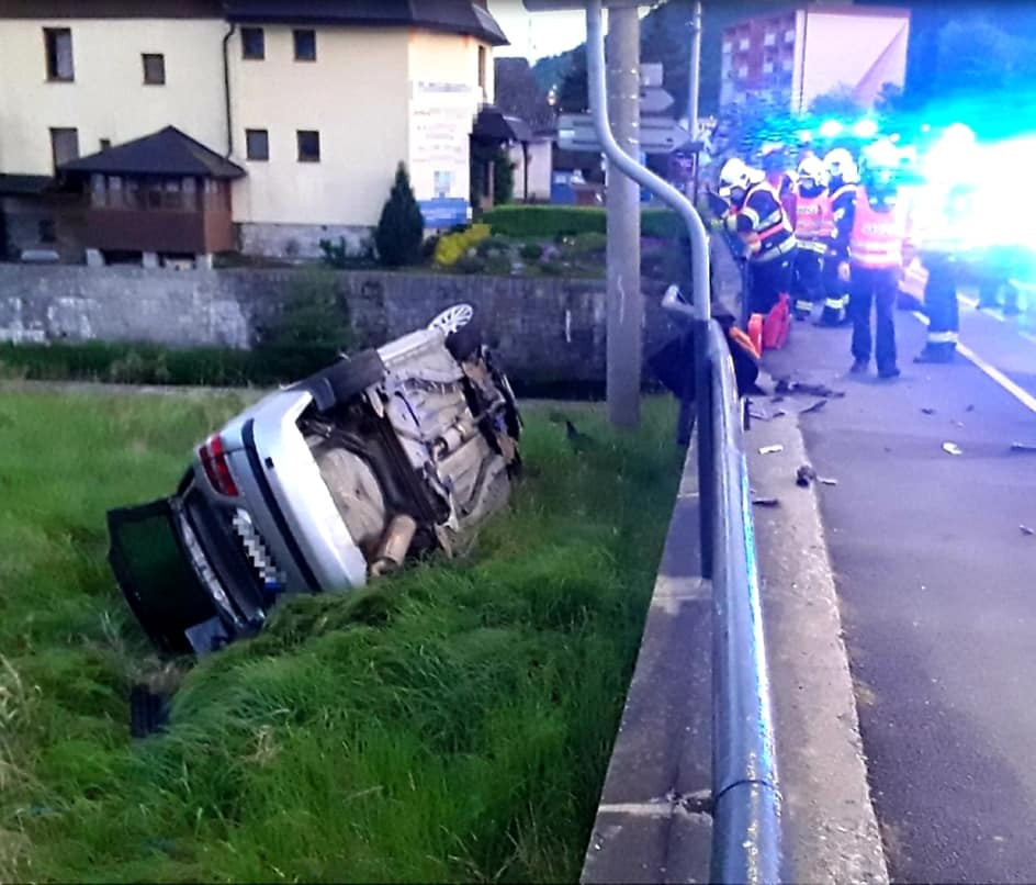 FOTO: Automobil spadl z mostu a skončil převrácený na boku