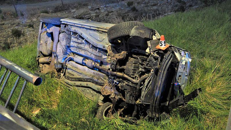 FOTO: Automobil spadl z mostu a skončil převrácený na boku