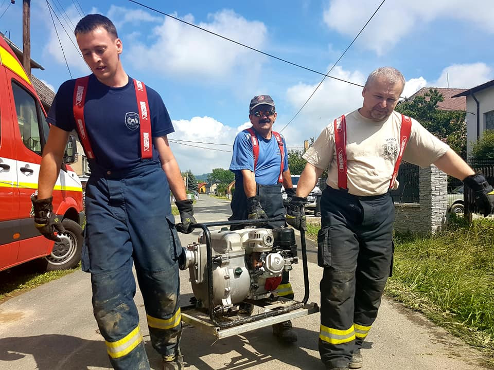 Ze zaplavených obcí na Uničovsku hasiči odváží tuny poškozeného materiálu
