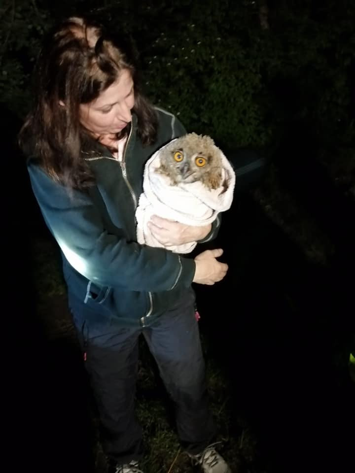 Záchrana výra byla úspěšná. Mládě poputuje do záchranné stanice k rekonvalescenci