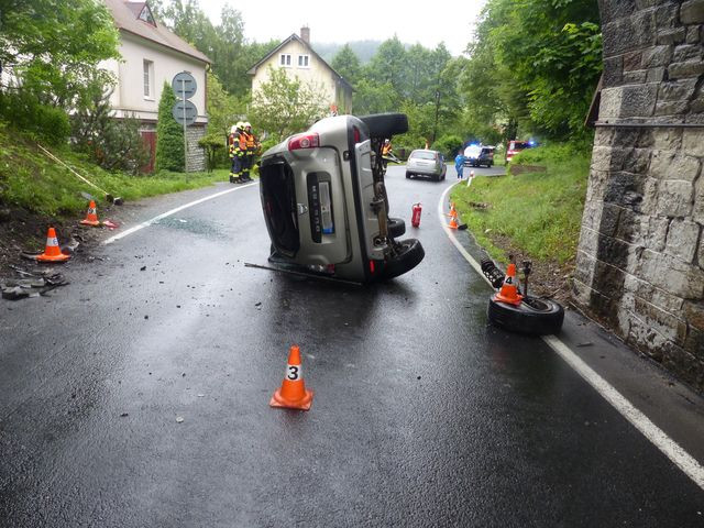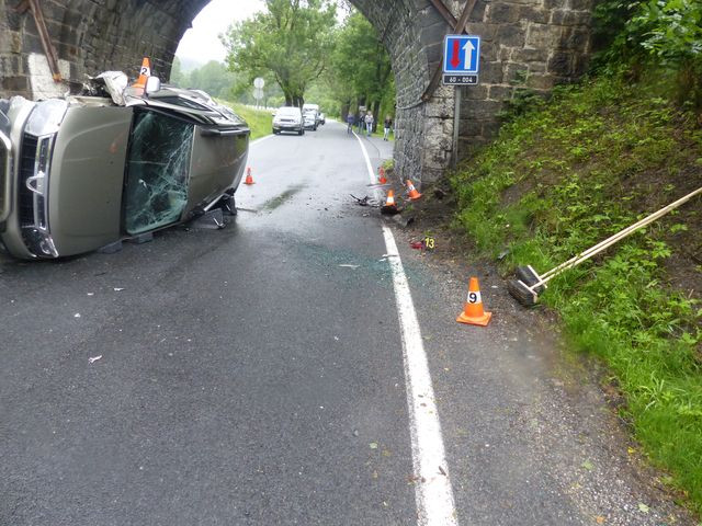 Senior nezvládl v rychlosti zatáčku a po nárazu do protijedoucího auta skončil na boku