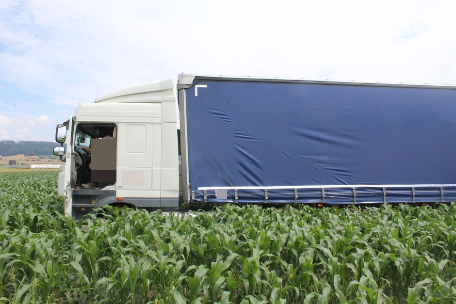 Řidič kamionu kvůli svojí nedbalosti najel do kukuřičného pole, nehoda se obešla bez zranění