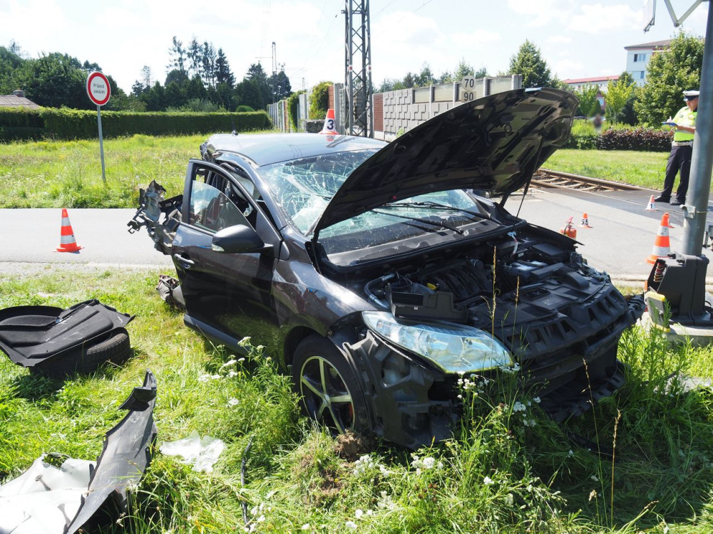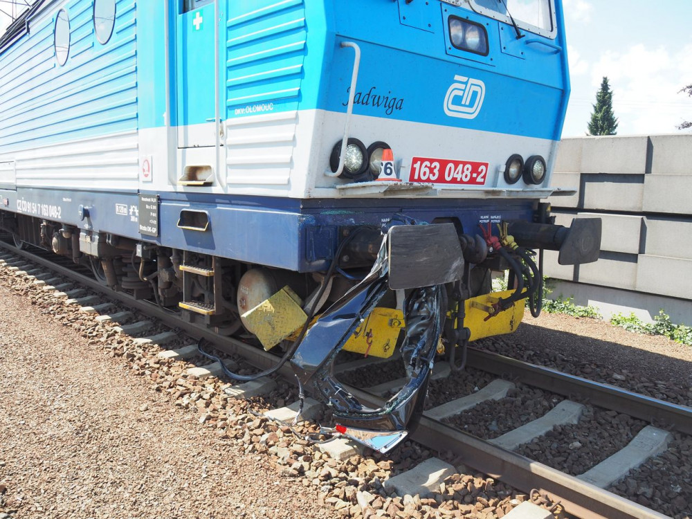 Na Šumpersku se střetl vlak s osobním autem, řidič se zranil