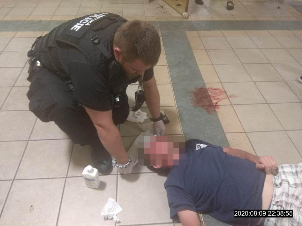 Muž si pádem poranil hlavu a upadl do bezvědomí. Strážníci mu zachraňovali život