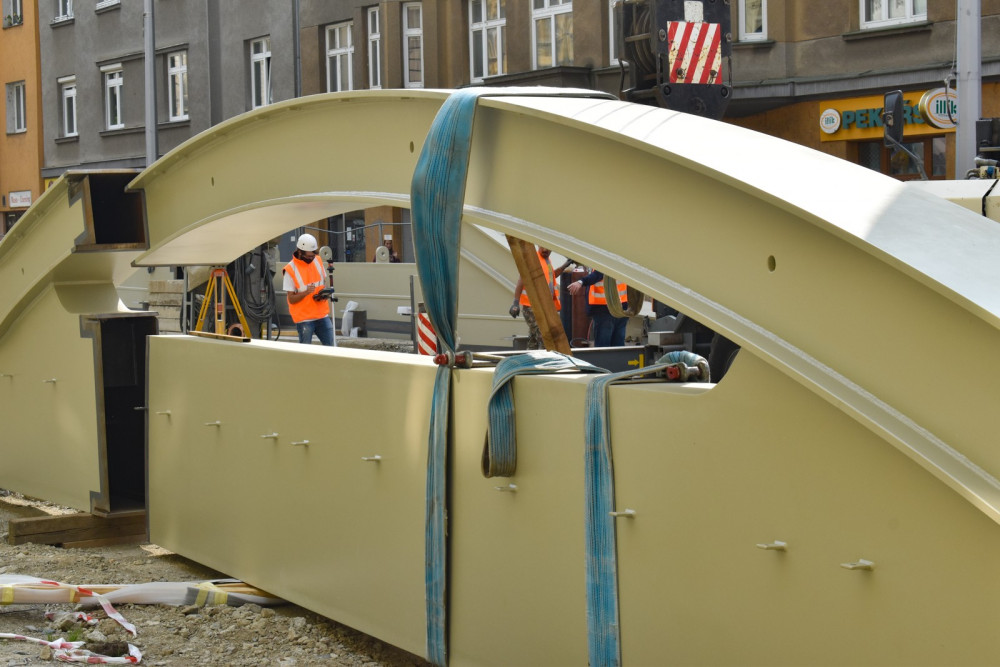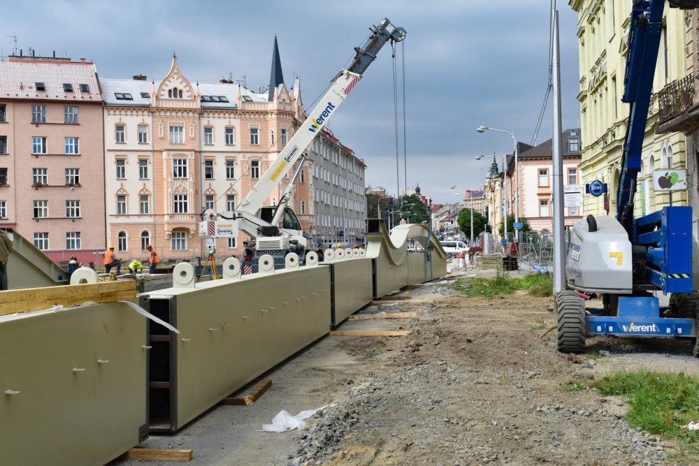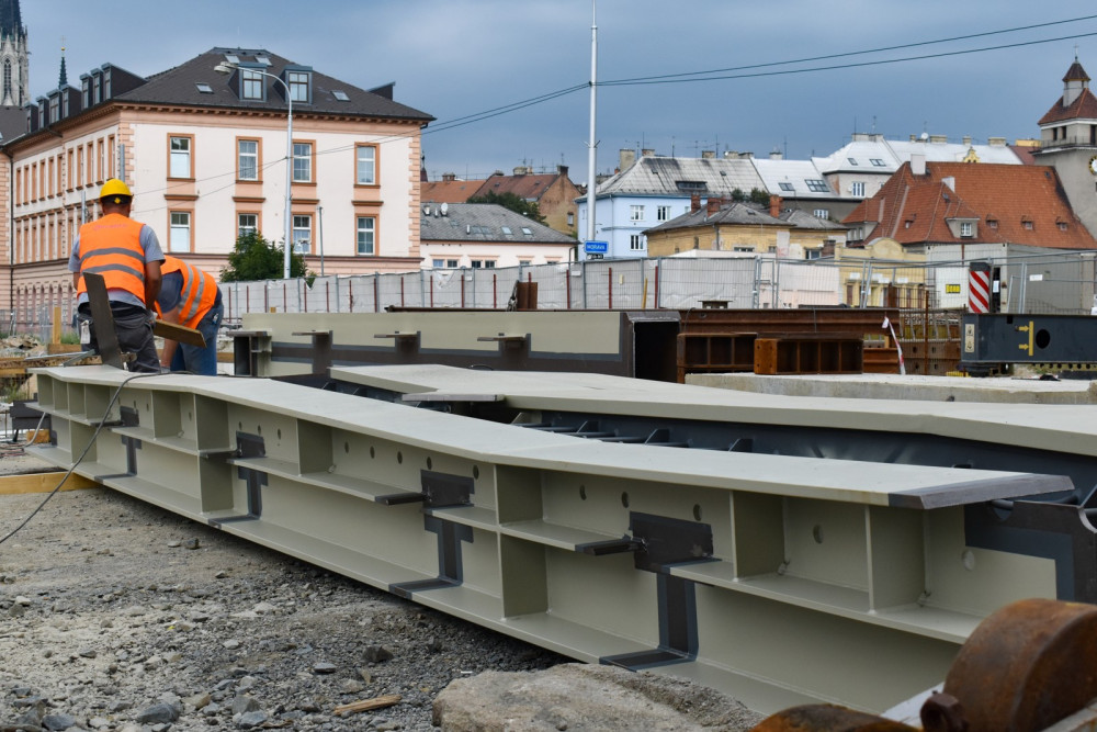 FOTO: K mostu na Masarykově třídě se z Itálie začaly dovážet kovové konstrukce