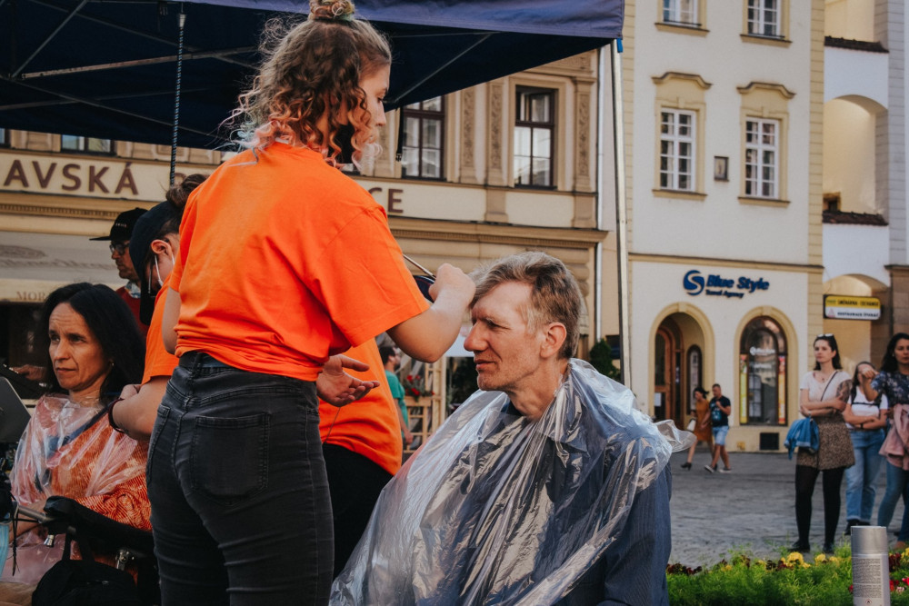 Studentky Štursovky na Horním náměstí ostříhaly handicapované zájemce.