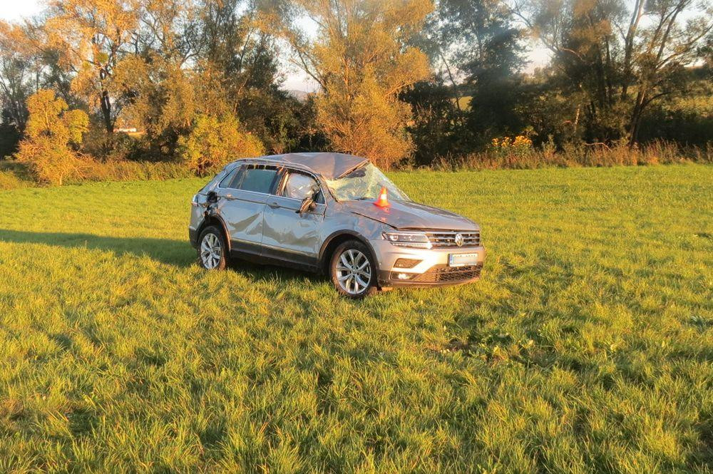 Řidič nezvládl předjíždění a havaroval. Při nehodě zranil spolucestujícího