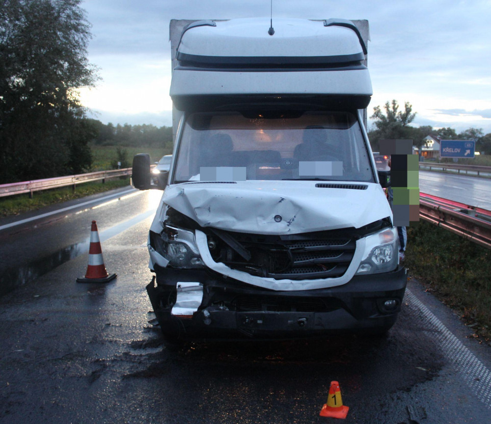 FOTO: Na D35 se u Olomouce srazila dvě auta, jeden zraněný