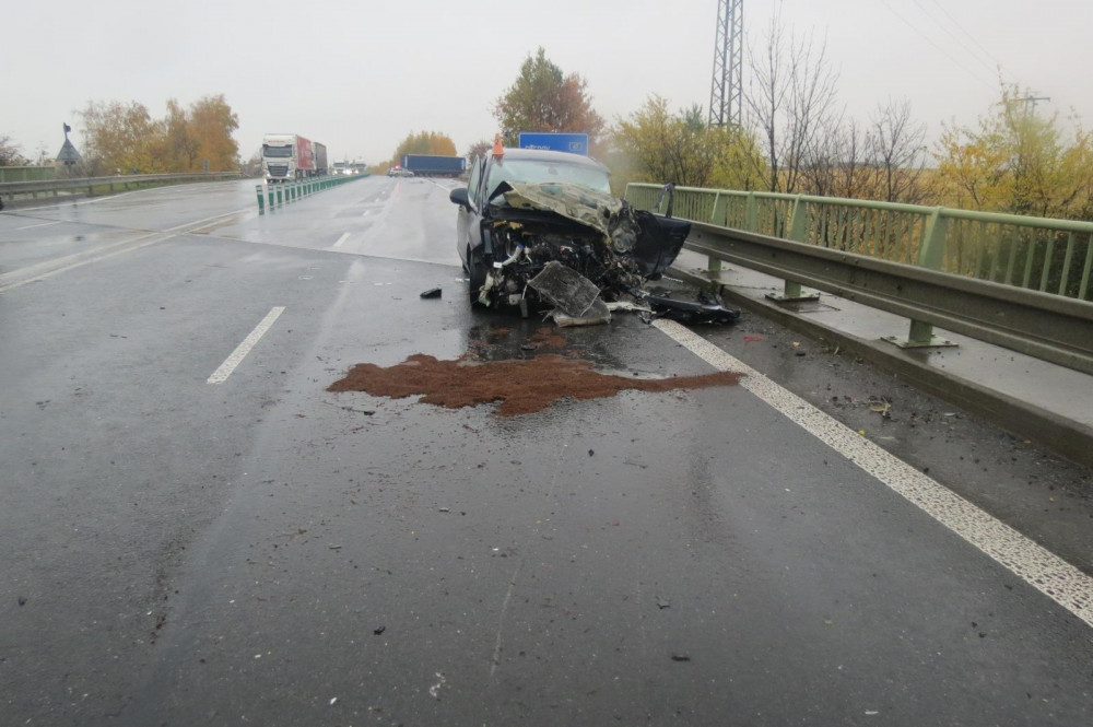 FOTO: Srážka auta s kamionem na půl dne zablokovala dopravu