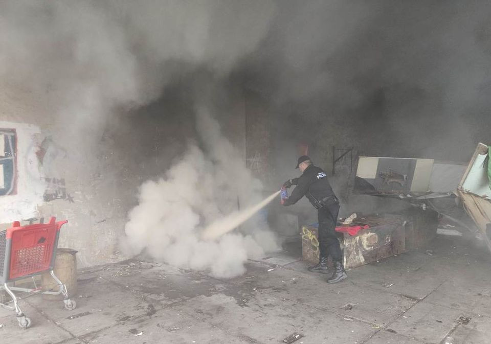 Přerovští strážníci hasili hořící odpad ve squatu