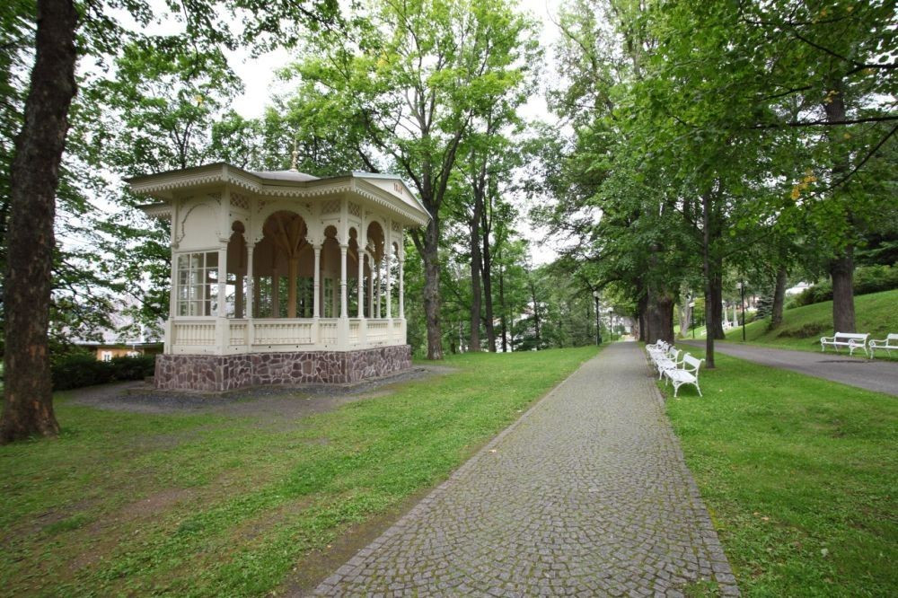 Neznámý vandal posprejoval dřevěný altán v areálu Priessnitzových lázní