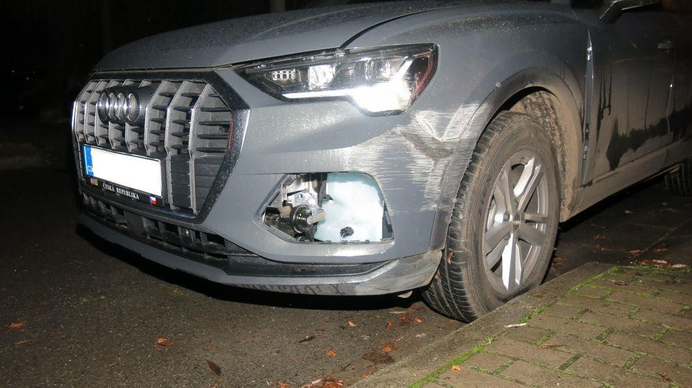 FOTO: Zjevně opilý řidič Audi narazil do domu. Z místa ujel, vypátrali ho svědci