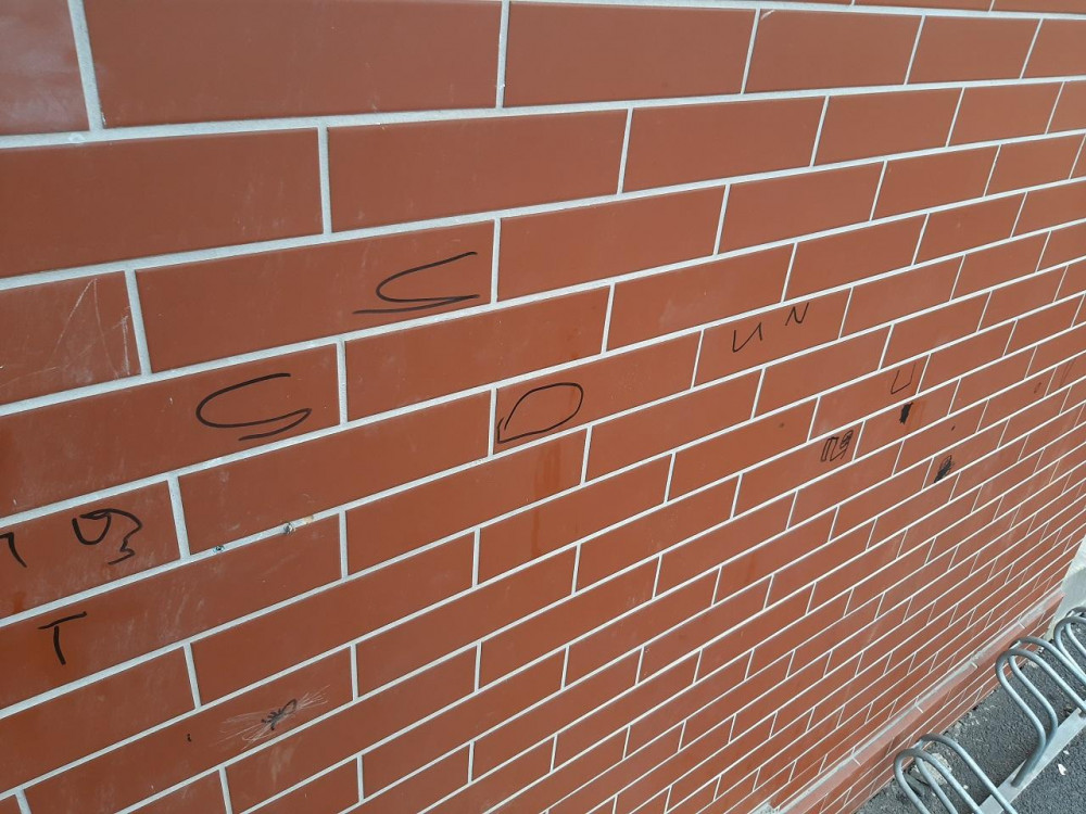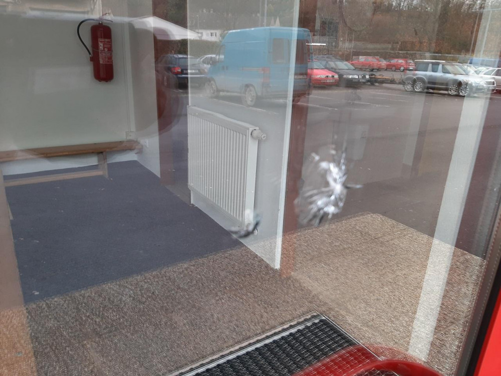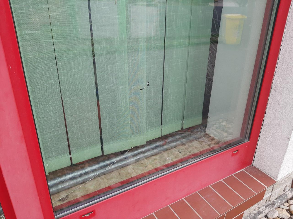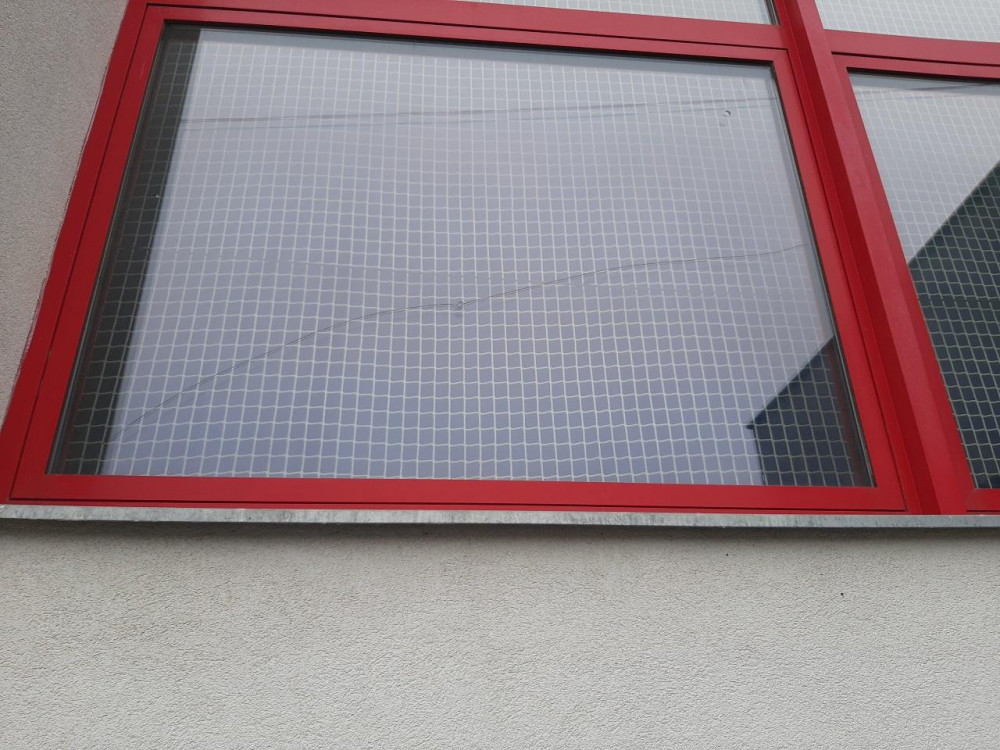 FOTO: Vandal poničil sportovní halu, počmáral obložení budovy, rozbil skleněné výplně